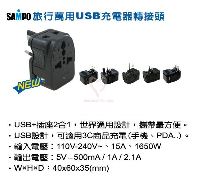 ●USB + 插座2合1,世界通用設計,攜帶最方便。