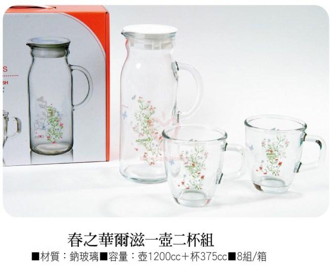 ●材質:鈉玻璃 ●容量:壺1200cc +杯375cc ●8組/箱